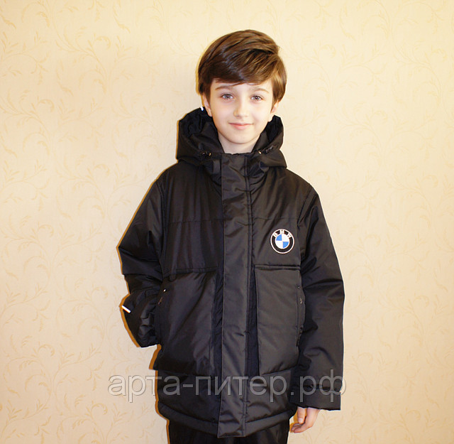 Два боковых кармана на молниях, низ затяжка на шляпный шнур с фиксацией на карабин, рукава и капюшон отделаны светоотражающим кантом.